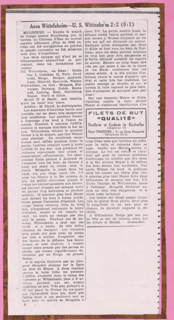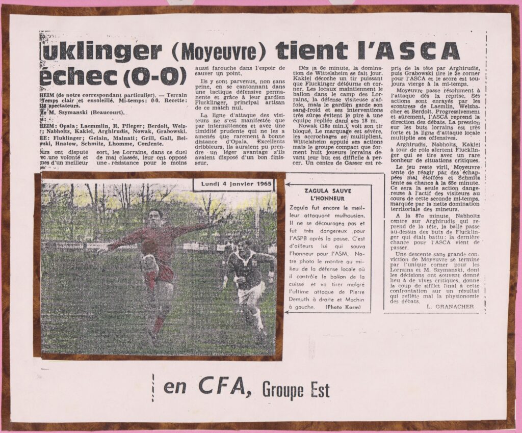 a) Asca-belfort : un compte-rendu-type de match rédigé par Granacher pour le journal « L’Alsace » dans les années 60 (doc fsz) ;