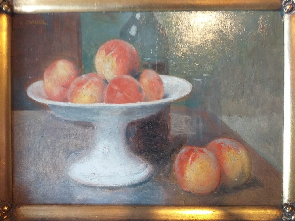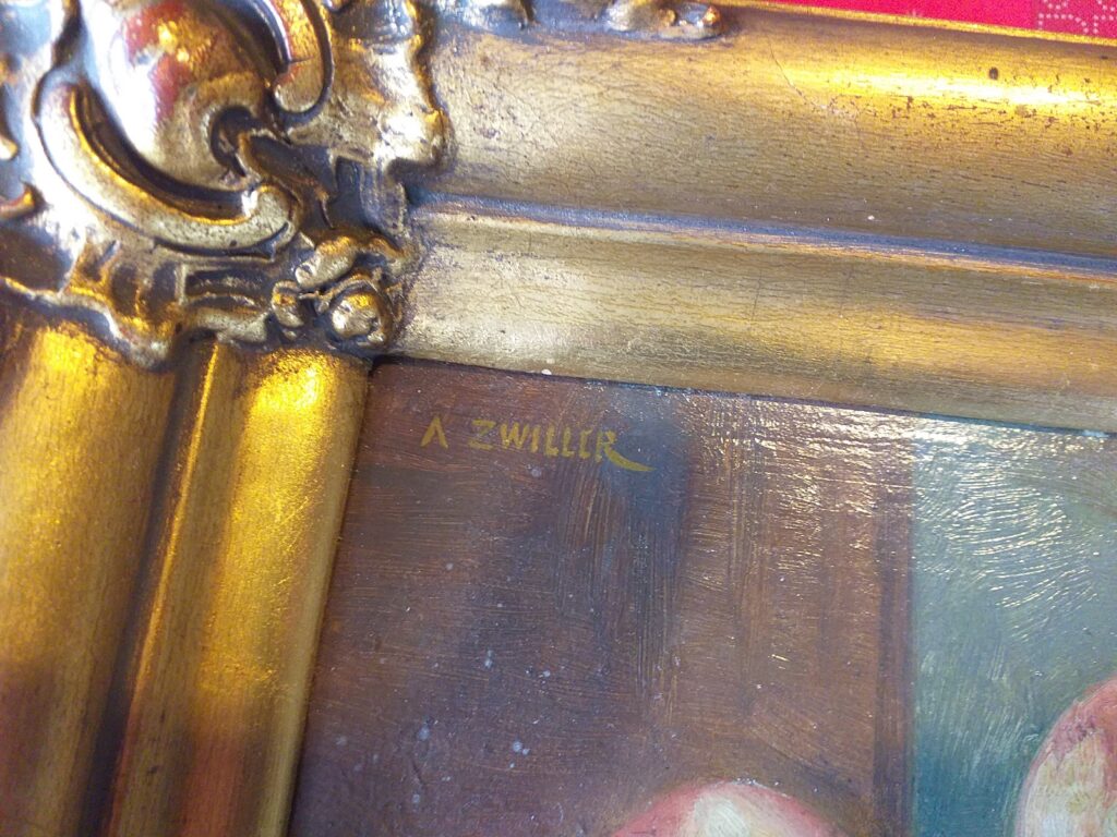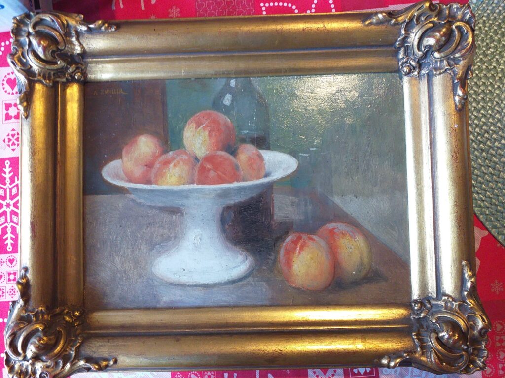9) Léguer cette œuvre de cette manière me semble un projet valable, car simple, droit, et cohérent ; il s’agit d’enrichir les collections visibles dans la plus grande ville du Haut-Rhin, comprise dans le « triangle » géographique franco-germano-helvétique, d’œuvres d’artistes alsaciens, et singulièrement mulhousiens, quoi de plus naturel de la part d’un homme public qui a toujours milité, haut et fort, pour notre régionalisme, plus encore par conviction que par devoir. Dans ce créneau thématique, le Musée, à mes yeux, ne saurait plus longtemps, comme c’est le cas à l’heure actuelle, sèchement se borner à valoriser Jean-Jacques Henner (1829-1905, très bien servi, une douzaine de toiles distinguées, quelle satisfaction de voir cela) et son épigone Marie-Augustin Zwiller, si mulhousien par nombre de ses sujets (1850-1939, à minima, seulement deux tableaux). C’est un peu peu, de se contenter de cela, quand on voit la longueur des listes disponibles, et ignorées, de peintres régionaux ! dont certains me semblent mériter une place dans un musée ; de cela, on pourrait évidemment discuter, en gens raisonnables ; je recommanderais à cet égard de prendre d’abord appui sur le très solide « Répertoire des artistes d’Alsace des XIXème et XXème siècles (peintres, sculpteurs, graveurs, dessinateurs) » de A. Bauer et J. Carpentier, aux éditions Oberlin ; le fascicule de 1991 portant sur les lettres « V à Z » contient par exemple, justement sur Zwiller (dont le président Jean-Jacques Weber a acheté, en mars 26, à l’antiquaire Goffinet de Lutterbach une petite nature morte, magistralement léchée, et que nous reproduisons en fin de cet article (C’est la première que je vois de lui une peinture d’objets, je ne le savais pas présent dans ce « créneau ».), quelle jolie action de mécénat de la part de ce protecteur confirmé du patrimoine régional, de la préserver ainsi de je ne sais quel destin peut-être regrettable.) ; une notice donc (pp 438-39) qui enchante par la richesse et la précision de l’information proposée ; et, personnellement, je ne saurais cacher (plus longtemps !) mon plaisir de signaler, en outre, dans le cadre de ces mémoires « Mémpol », un article (pages 432-33) consacré à mon ami Robert Zieba (1932-2021), d’origine polonaise et du Bassin potassique comme moi, peintre-spécialiste des paysages enneigés du Sundgau, par lesquels l’artiste a indéniablement fait aimer l’Alsace, notre si chère région d’adoption, et c’est beaucoup ; je n’aurai pas ici l’audace de prendre sur moi tout seul d’affirmer que la production de Robert mérite de figurer dans un musée, toujours est-il que son succès a été récompensé, en 1984, par un « Bretzel d’or », ce qui signifie quand même que pour un certain public sa signature ne saurait être sous-évaluée ; bon, c’est vrai qu’ on ne peut que considérer que Zieba, de Wittelsheim-Staffelfelden, a hissé le blanc-neige sud-alsacien au niveau, triomphal, d’une image d’Epinal ; ledit fascicule donne d’ailleurs une reproduction, et en couleurs, d’une huile sur toile du mineur-peintre, ce qui constitue pour moi une satisfaction supplémentaire.