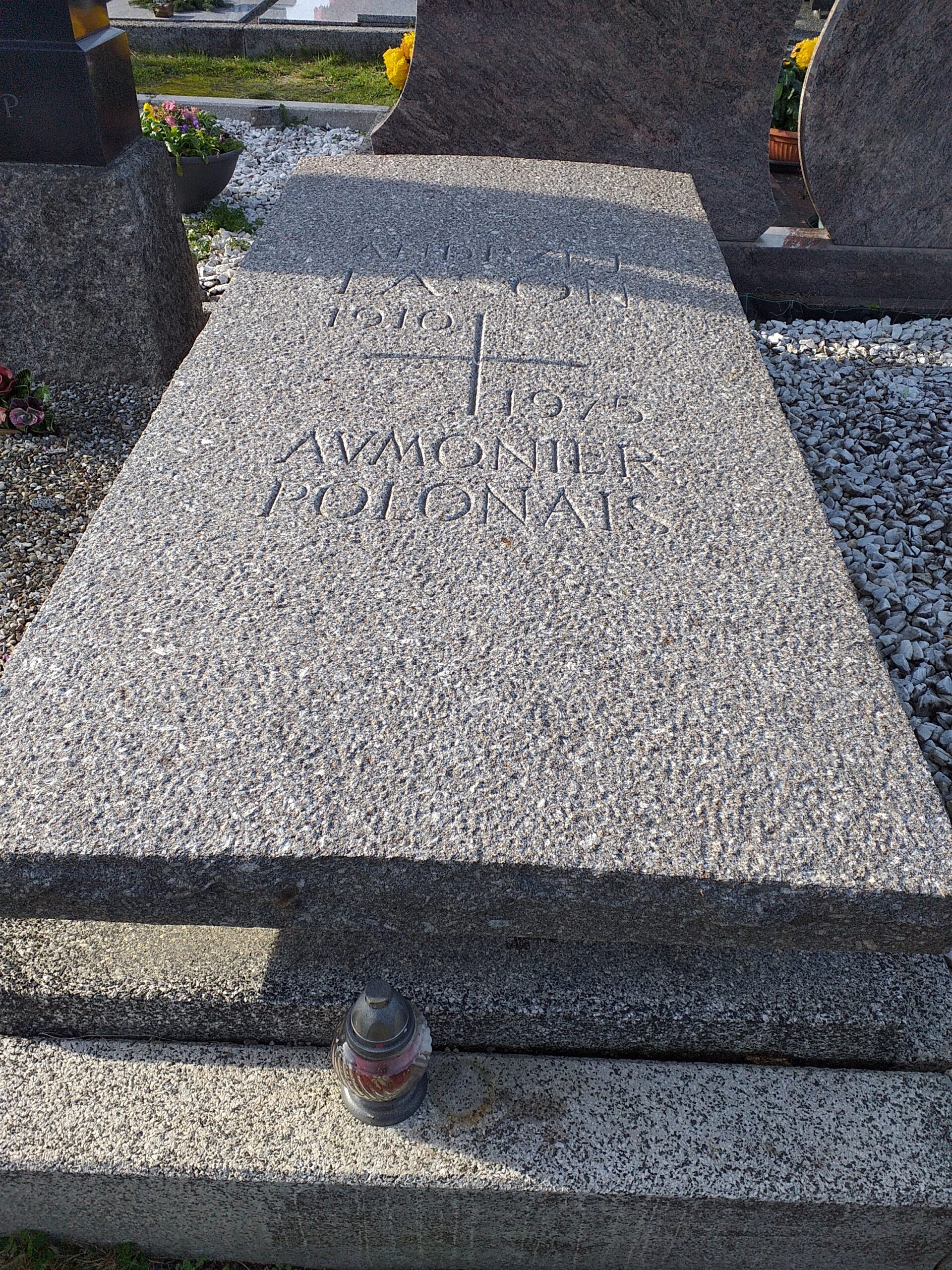Le curé Marjan Krupinski, déporté et incinéré au camp de concentration de Dachau, lui, par définition, n’a pas de tombe ; mais un important ex voto, en latin, lui est consacré en l’église Ste-Barbe de Wittenheim, à la droite de l’effigie de la Vierge noire à l’Enfant nationale de Czestochowa.