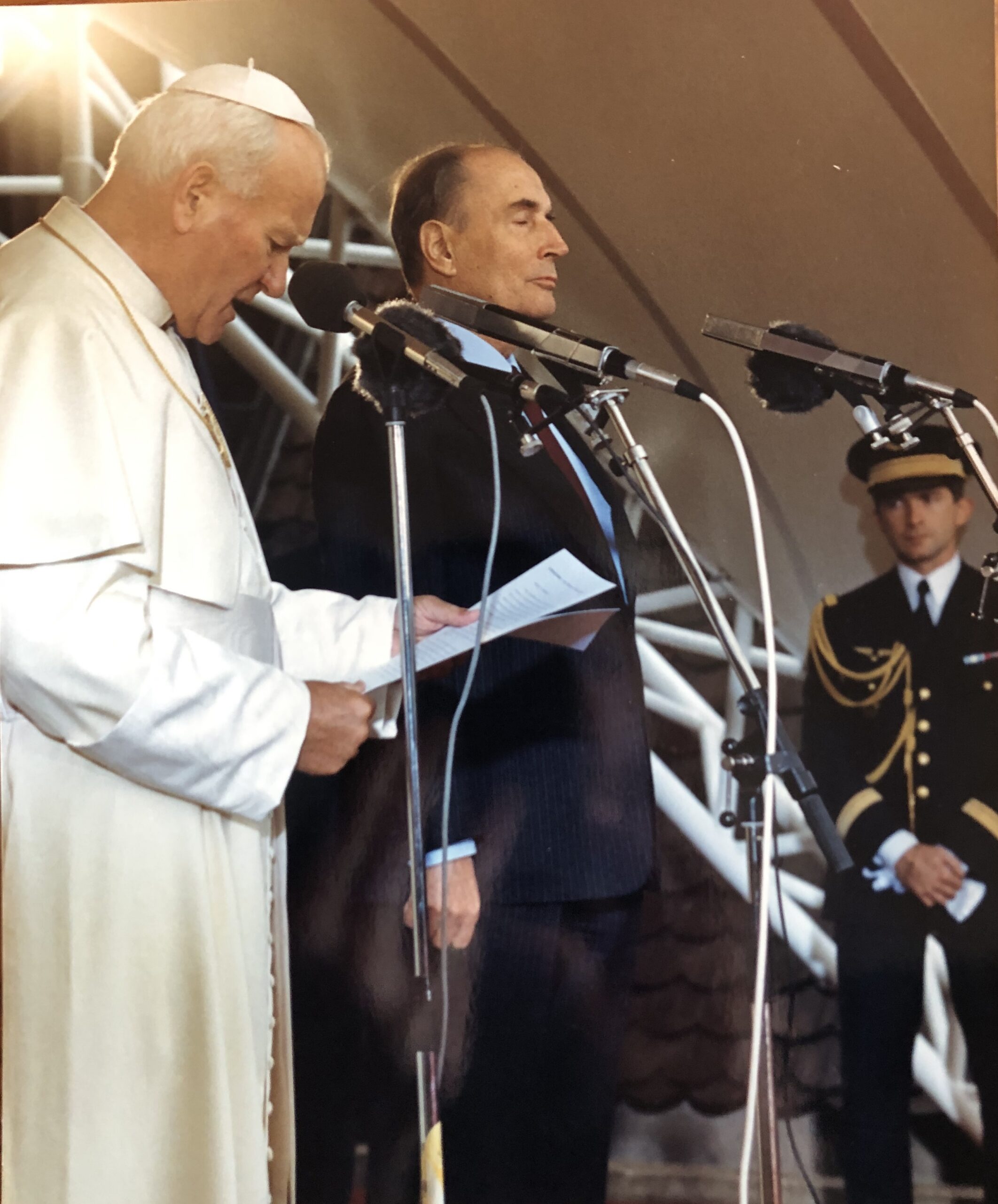 b) Allocution du pape à son arrivée à l’aéroport d’Entzheim ; François Mitterrand écoute les yeux clos…