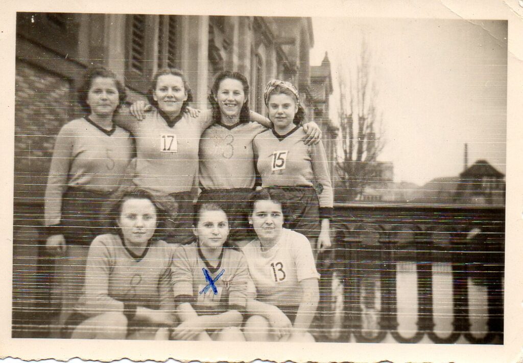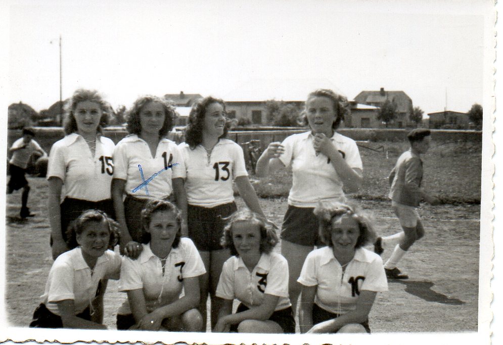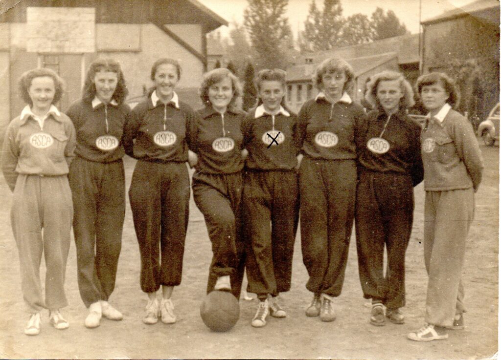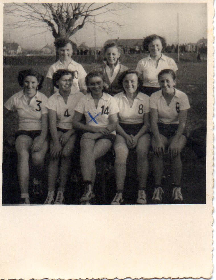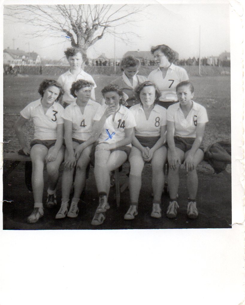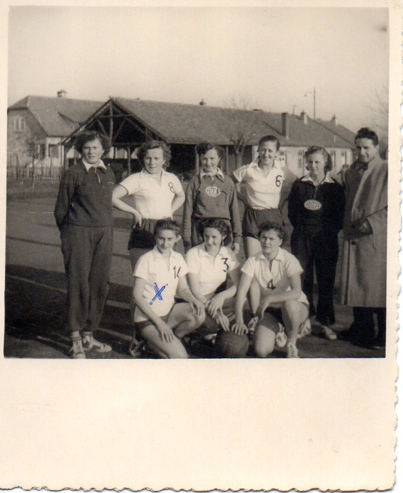 3) En attendant, voyez la ci-dessous demoiselle en diverses circonstances : en train de jouer ou de poser, en individuel ou en équipe, en tenue de sport ou de ville, au stade de l’Asca ou en déplacement, à Grassegert (la cité minière de Wittelsheim) ou en excursion, en débutante ou vétérane, en noir et blanc ou en couleurs.