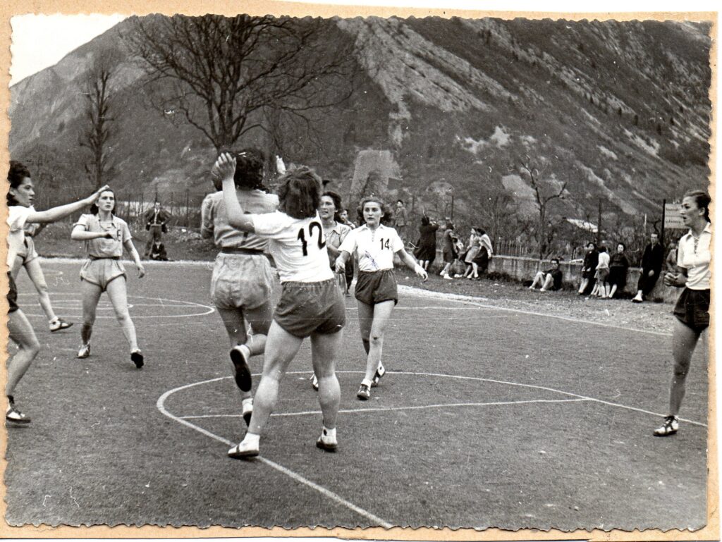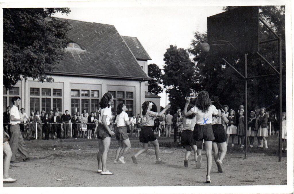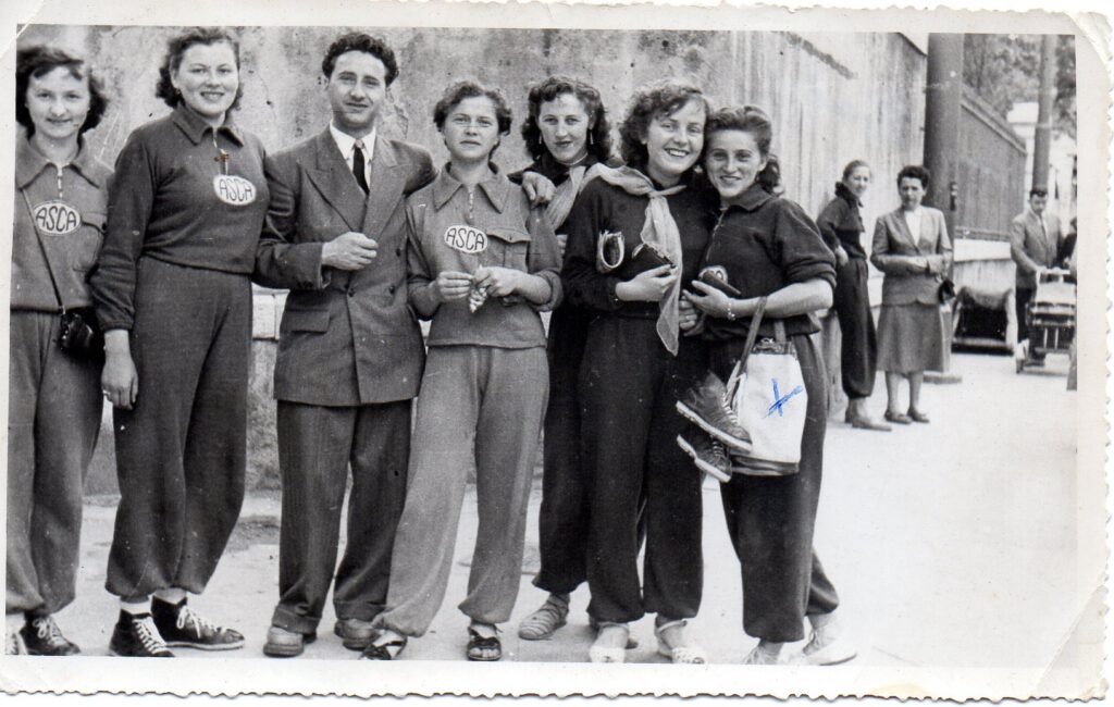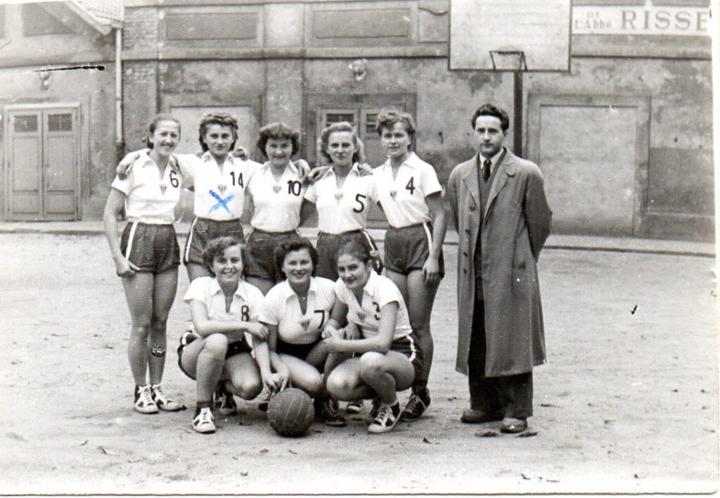 1) En complément de ce que nous avons déjà indiqué, dans l’article « Asca 20 ans après… », sur les débuts, dès la dernière guerre finie, des sections de basket, et de hand, de ce club, nous donnons aujourd’hui « L’album Jeannine » », une quinzaine de photos où il s’agit de suivre la maillot blanc n° 14, avec un ou deux n, Jeanine, ou Jeannine, Sroczynski (non polonophones ne vous cassez pas la tête, ou plutôt la langue, et prononcez à votre aise francophone « Srozinski » ; ou, pour amateurs (nombreux) de surnoms « Sroche ».